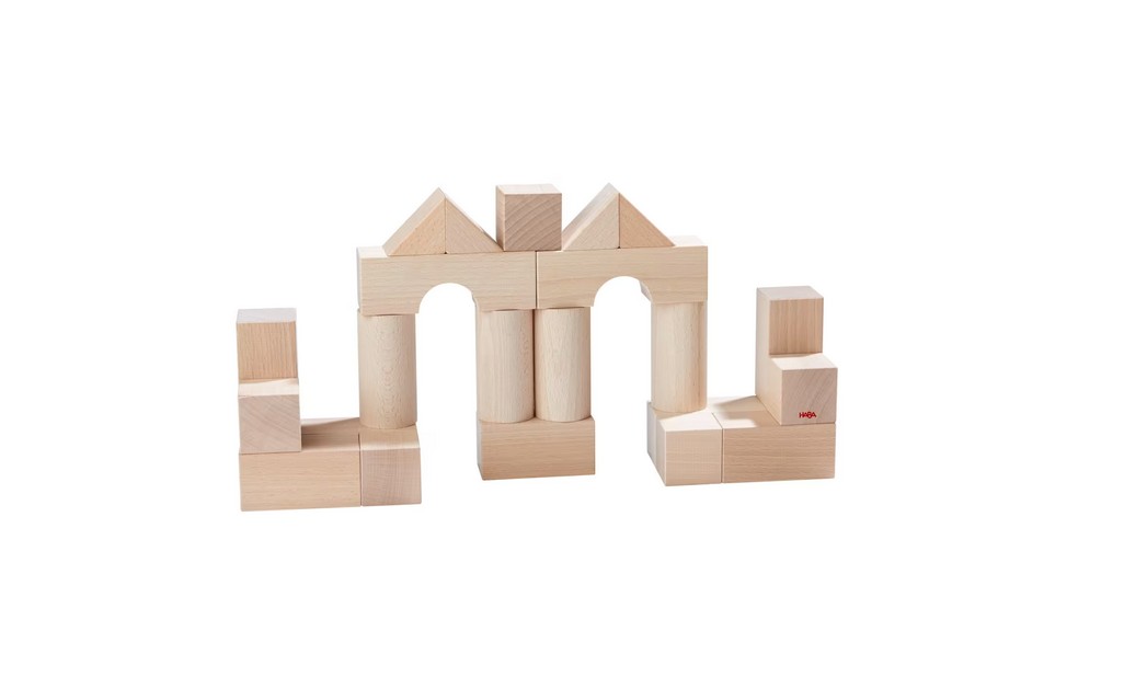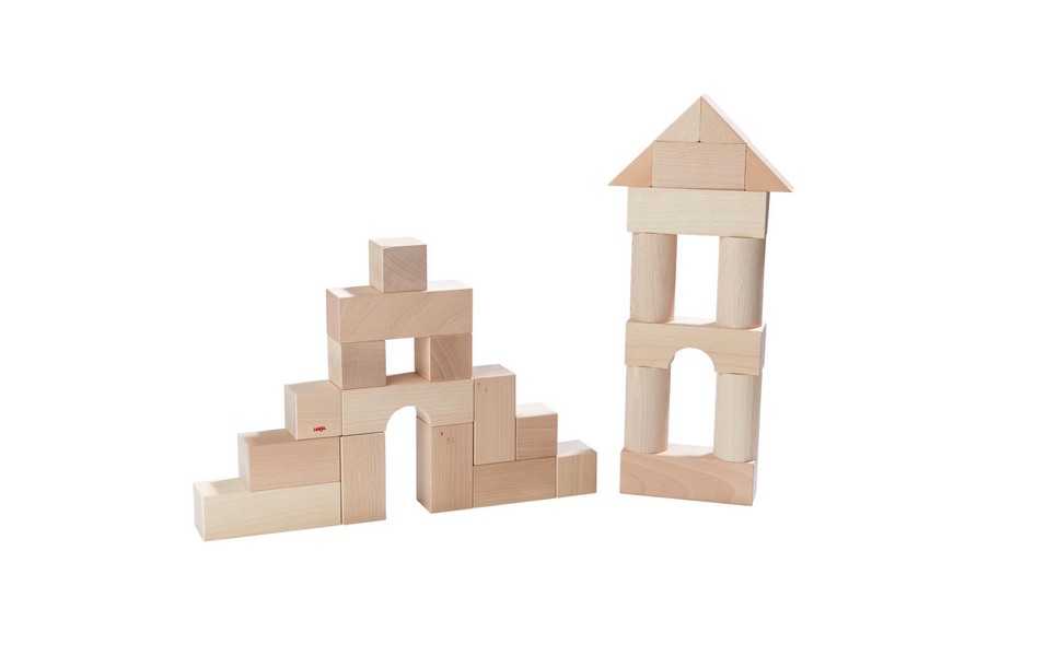 Die HABA-Basisbausteine-Grundpackung ist ein elementares Spielzeug für Kinder. Erst erkunden die Kleinsten die Bausteine mit allen Sinnen – so entdecken sie Form, Größe und Gewicht – dann erobern sie Stein für Stein die spannende Welt des Bauens. Mit den Grundformen Würfel und Quader werden bereits kleine Baumeister ans Stapeln herangeführt. Schritt für Schritt schärfen sie beim Bauen ihre Auge-Hand-Koordination und ihre Feinmotorik. Zusammen mit den Rundsäulen, Dreiecksprismen und Brücken werden aus den anfangs noch wackeligen Türmen schnell vielfältige Bauvarianten.