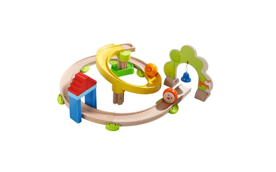 Die Kringelbahn der HABA-Kugelbahn Kullerbü macht ihrem Namen wirklich alle Ehre! Gleich mehrere Kurven sorgen für eine Extraportion Kringelspaß. Ein Schups genügt, und Kugel Paul stürzt sich in die Steilkurve, um dann schwungvoll durchs Tor zu sausen und am Ende der Kringelbahn das Glöckchen-Tor zu passieren. Mit einem fröhlichen „Klingeling“ läutet das Glöckchen das Ende der munteren Fahrt ein. Wer weiterspielen möchte, kann die Kringelbahn beliebig mit jeder anderen Kullerbü-Kugelbahn ergänzen. Dank cleverem Klicksystem bleibt die gesamte Bahn sicher stehen, kein Element verrutscht. Also nichts wie auf zur nächsten Kringelrunde!Für alle, die mehr über Kullerbü erfahren wollen, gibt es Vorlese-Geschichten, DIY-Inhalte, Informationen für die Eltern und Spiele in der Themenwelt Kullerbü.