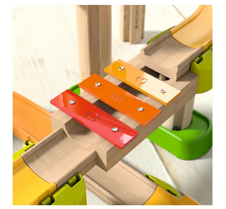 1 Glöckchen-Tor, 1 Wellenkurve, 2 Kugel-Steilkurven, 1 Klangtreppe, 1 Kurve, 2 Geraden, 1 Rampe, 7 Säulen, 13 Verbindungselemente, 1 Startstein, 5 Dominosteine, 1 Kugel Paul, 1 Effektkugel, 1 Kugel.