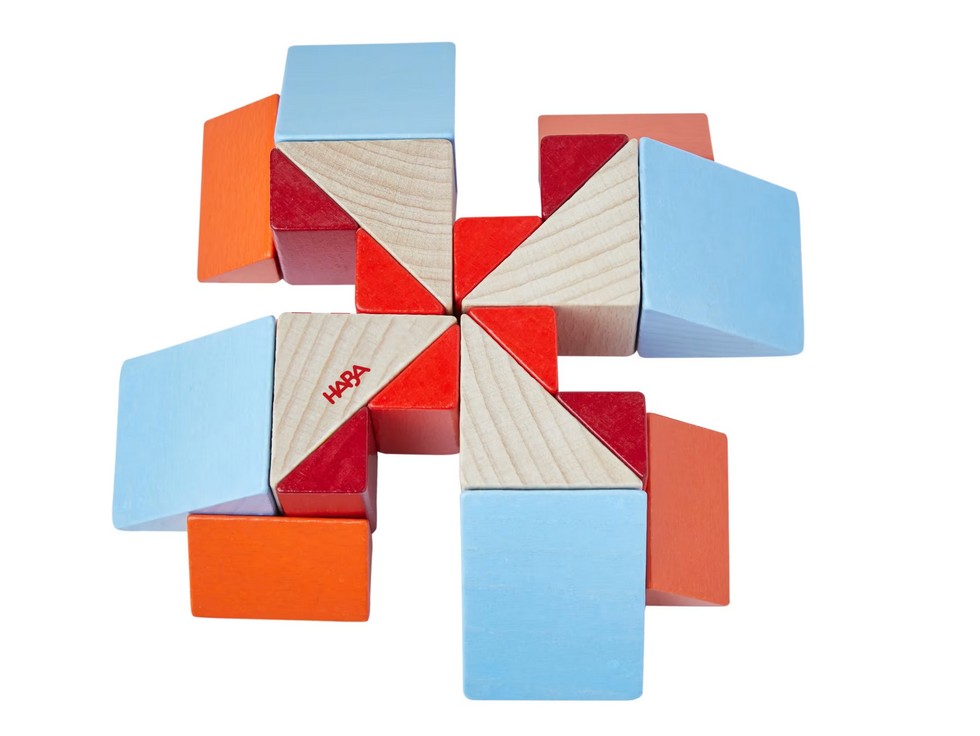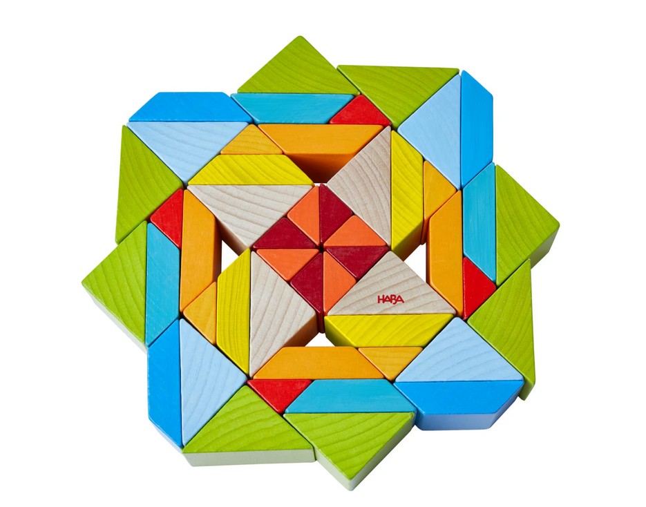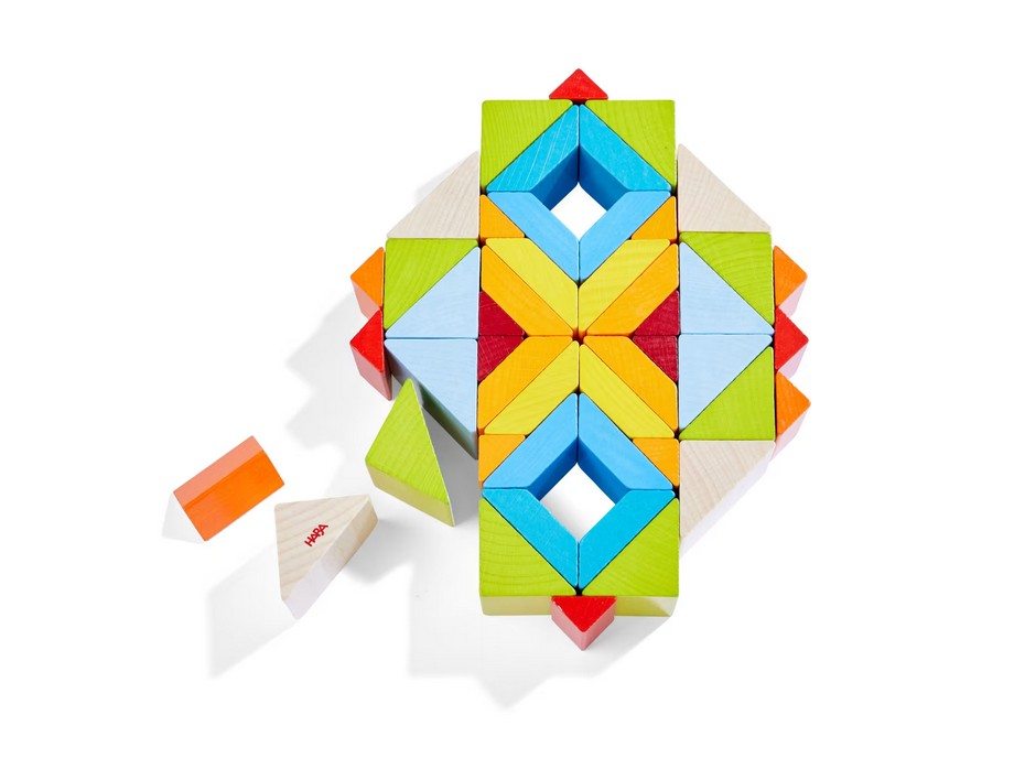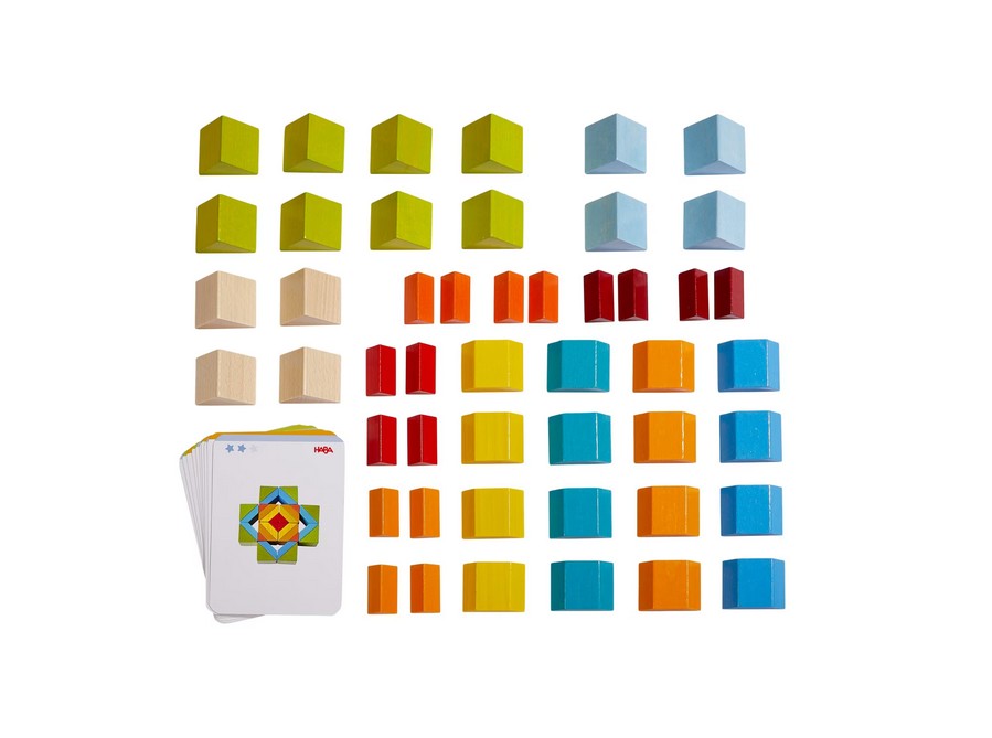 Ein echter Augenschmaus ist das 3D-Legespiel Würfelmosaik von HABA. Kleine Lege-Künstler genießen mit den 48 Legesteinen kunterbunten Baustein-Spaß. Stein an Stein entstehen im freien Spiel oder nach Vorlage wunderschöne Designvarianten. Inspirationen liefern dabei 10 doppelseitig bedruckte Vorlagekarten. Beim 3D-Legespiel Würfelmosaik von HABA sind der Fantasie keine Grenzen gesetzt! Immer wieder probieren Kinder ab 3 Jahren neue Muster aus und freuen sich über die wunderschönen Ergebnisse. Ganz nebenbei lernen sie außerdem erste geometrische Formen kennen und fördern ihre feinmotorischen Fähigkeiten.