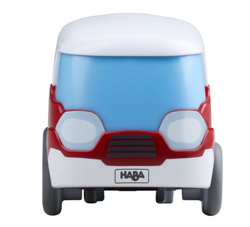 Der knuffige Bus erobert die HABA Cars-Strecken. Kurz anschieben und schon geht’s los. Mit Schwungmotor ist das rote Spielzeug-Auto schnell unterwegs. Auch auf dem Tisch und dem Fußboden meistert das Auto für Kinder ab 2 schwungvoll größere Strecken. Die detaillierte Gestaltung regt zu fantasievollen Spiel-Abenteuern in HABA Cars an. Mit kompakten Maßen und abgerundeten Kanten lässt sich der Spielzeug-Bus bequem von kleinen Kinderhänden greifen und halten. Großer Spiel-Spaß mit HABA!