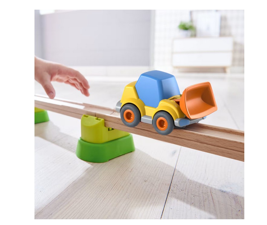 Knatter, brumm – die neuen Baustellenfahrzeuge bringen noch mehr Fahrspaß, Abwechslung und Geschwindigkeit ins HABA Cars-Spielsystem. Besonders spannend für kleine HABA Cars-Fans ist das Thema Baustelle: Mit dem Radlader können sie die Kugeln nach Herzenslust hin- und hertransportieren Der Schwungmotor sorgt dabei für noch mehr Tempo und Fahrvergnügen. Doch auch unabhängig von den HABA Cars-Bahnen können Kinder ab 2 Jahren mit dem Radlader wunderbar frei am Boden spielen und ihren Spaß haben. Die bunte HABA Cars-Spielwelt begeistert Groß und Klein durch ihren leichten Aufbau sowie spannende Themen- und Ergänzungssets mit fröhlichen Kullerkugeln.