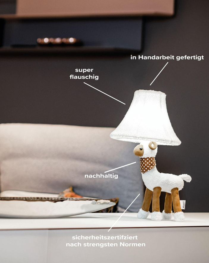 Unsere Happy Lamps in Stofftieroptik sind nach höchstem Standard durch das renommierte Testinstitut „Hansecontrol“ sicherheitszertifiziert. Sie werden in Handarbeit hergestellt und bestechen durch ihr exklusives Produktdesign. Schaue dir gerne unsere weiteren einzigartigen Modelle an. In unserem Onlineshop findest du die komplette Happy Family und kannst dir deinen Liebling direkt nach Hause bestellen.