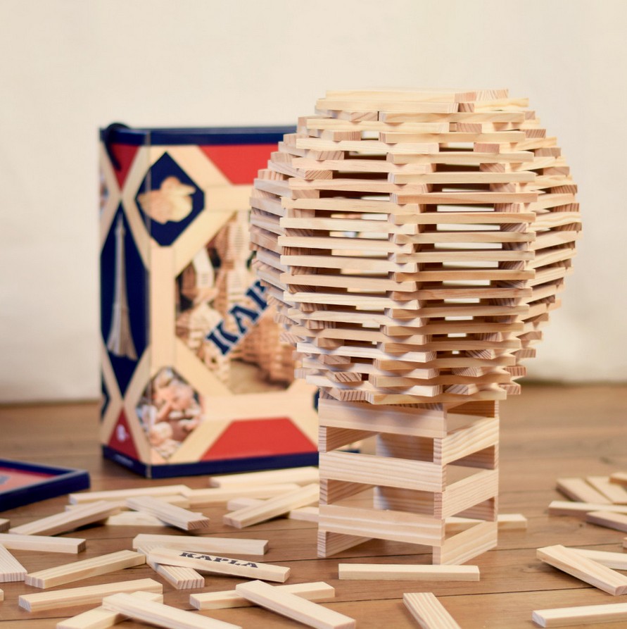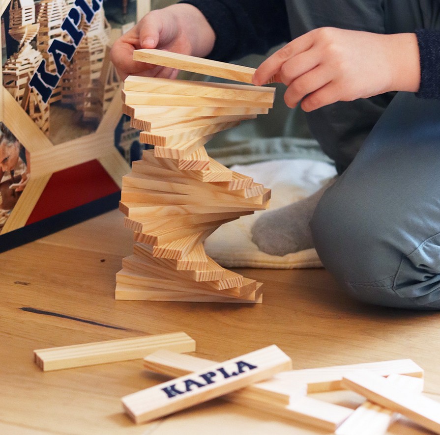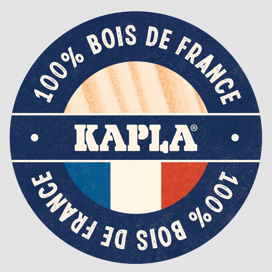 Die KAPLA-Plättchen sind aus naturbelassenem, nachhaltigem Pinienholz (Seekiefer) gefertigt, das aus französischen, zu 100% nachhaltig bewirtschafteten Wäldern stammt. Die farbigen Holzplättchen sind mit lebensmittelechter Farbe gefärbt.