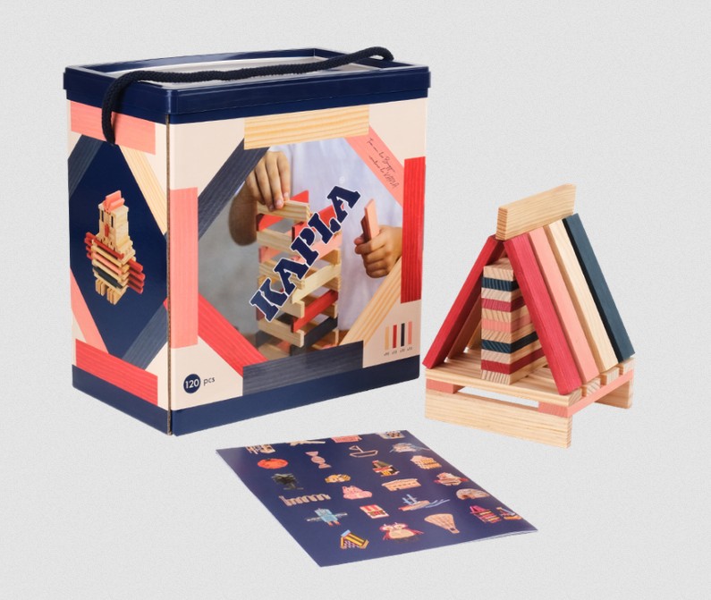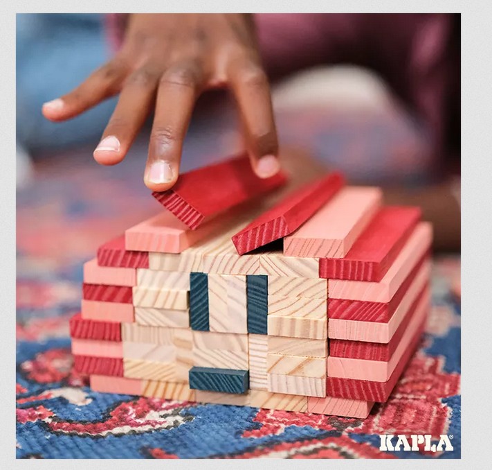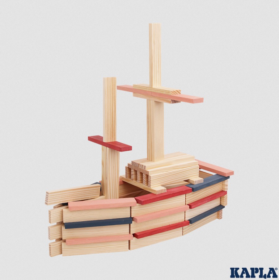 Die KAPLA-Plättchen sind aus naturbelassenem, nachhaltigem Pinienholz (Seekiefer) gefertigt, das aus französischen, zu 100% nachhaltig bewirtschafteten Wäldern stammt. Die farbigen Holzplättchen sind mit lebensmittelechter Farbe gefärbt.