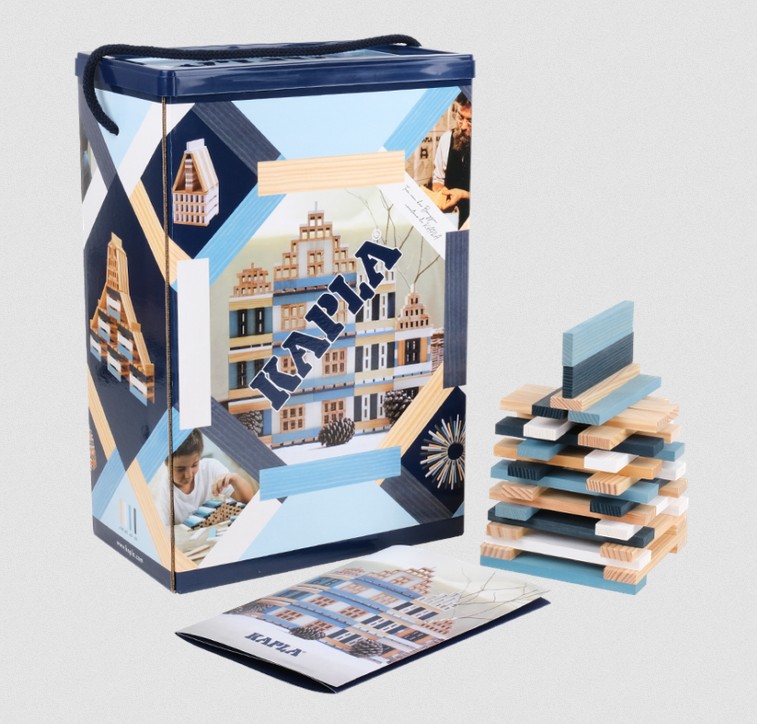 Die KAPLA-Plättchen sind aus naturbelassenem, nachhaltigem Pinienholz (Seekiefer) gefertigt, das aus französischen, zu 100% nachhaltig bewirtschafteten Wäldern stammt. Die farbigen Holzplättchen sind mit lebensmittelechter Farbe gefärbt.