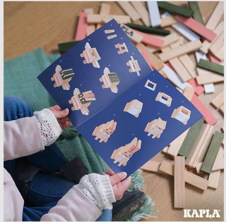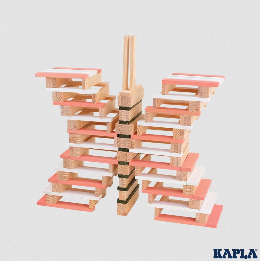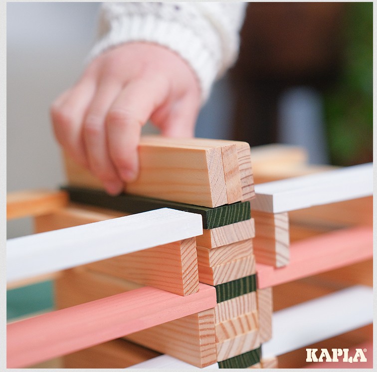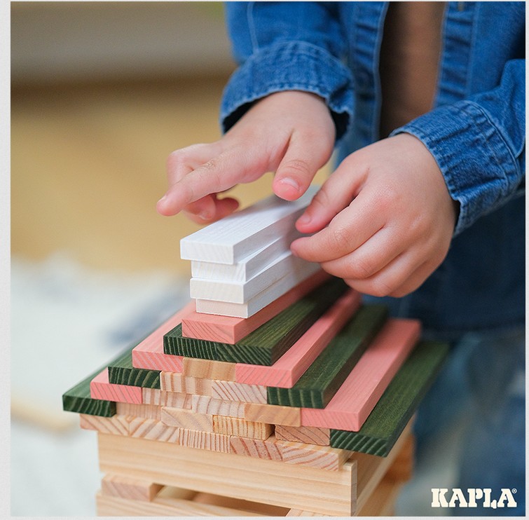Die KAPLA-Plättchen sind aus naturbelassenem, nachhaltigem Pinienholz (Seekiefer) gefertigt, das aus französischen, zu 100% nachhaltig bewirtschafteten Wäldern stammt. Die farbigen Holzplättchen sind mit lebensmittelechter Farbe gefärbt.