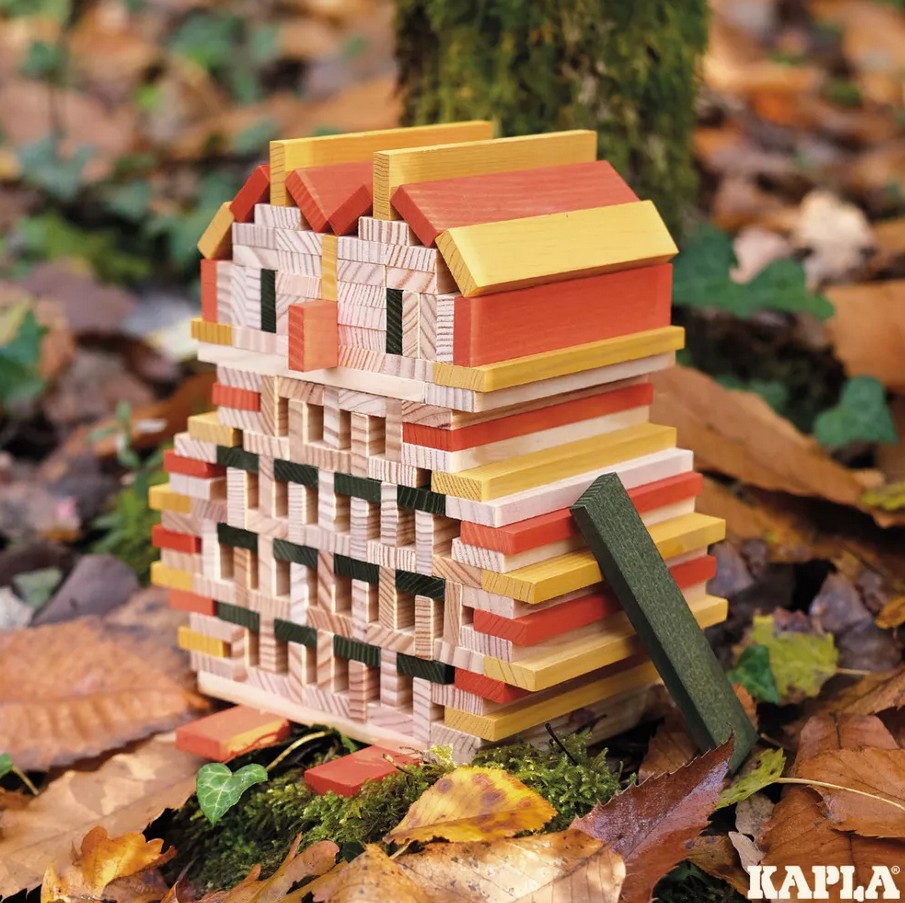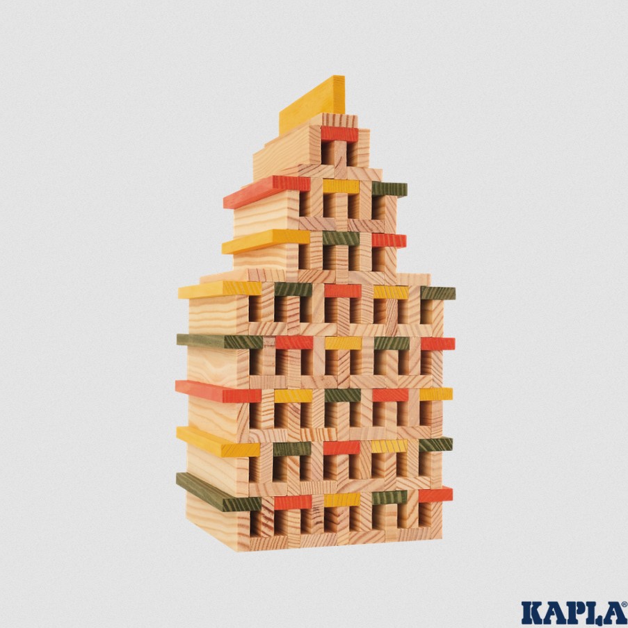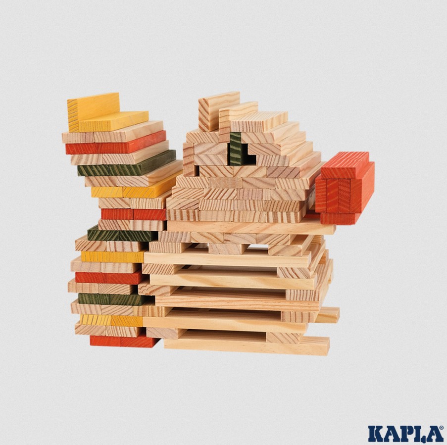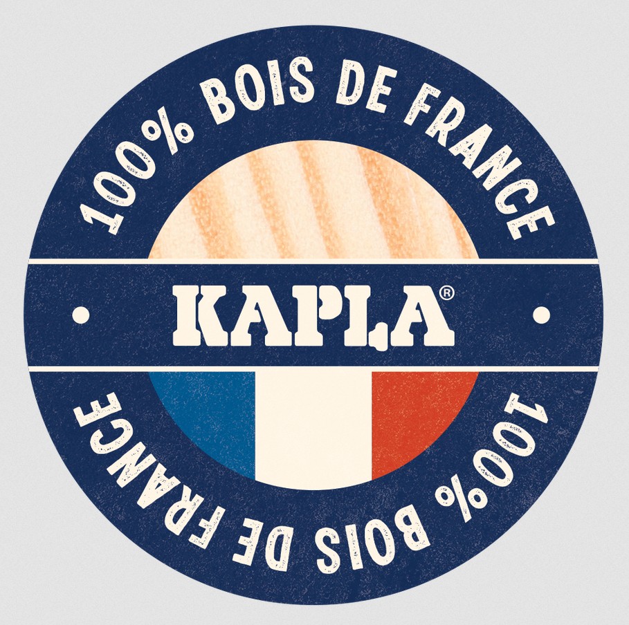 Die KAPLA-Plättchen sind aus naturbelassenem, nachhaltigem Pinienholz (Seekiefer) gefertigt, das aus französischen, zu 100% nachhaltig bewirtschafteten Wäldern stammt. Die farbigen Holzplättchen sind mit lebensmittelechter Farbe gefärbt.