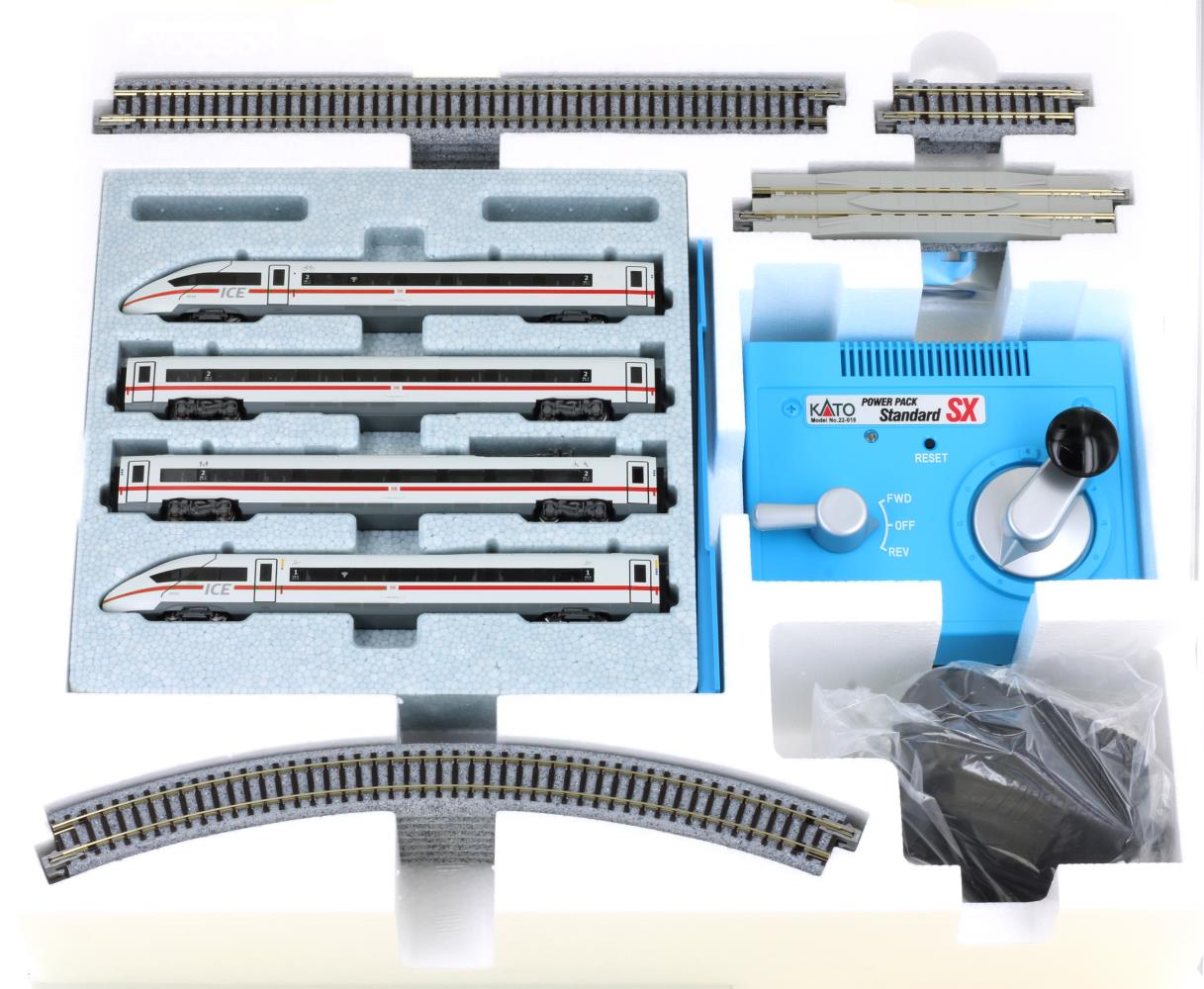 Dein Start in das schönste Hobby der Welt mit Deutschlands schnellstem Klimaschützer. Das Startset besteht aus einem vierteiligen Triebzug der Baureihe 412 (ICE4), einem Kato-Schienenoval und einem Fahrregler mit Netzteil.