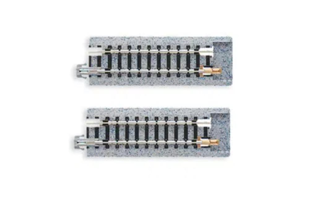 Wenn Sie zukünftig UNITRACK verwenden wollen und bisher Schienen eines anderen Herstellers verbaut haben, ist der Übergang dank des Überganggleises von KATO kein Problem. Die Gleisbettung des Übergangsgleises ist an einem Ende ausgespart und mit einem handelsüblichen Schienenverbinder versehen. Egal, ob Sie Spur N Gleise von Fleischmann-Piccolo, Roco, Arnold oder Minitrix verwenden, mit dem UNITRACK Übergangsgleis gelingt der Übergang einfach, praktisch und zuverlässig!