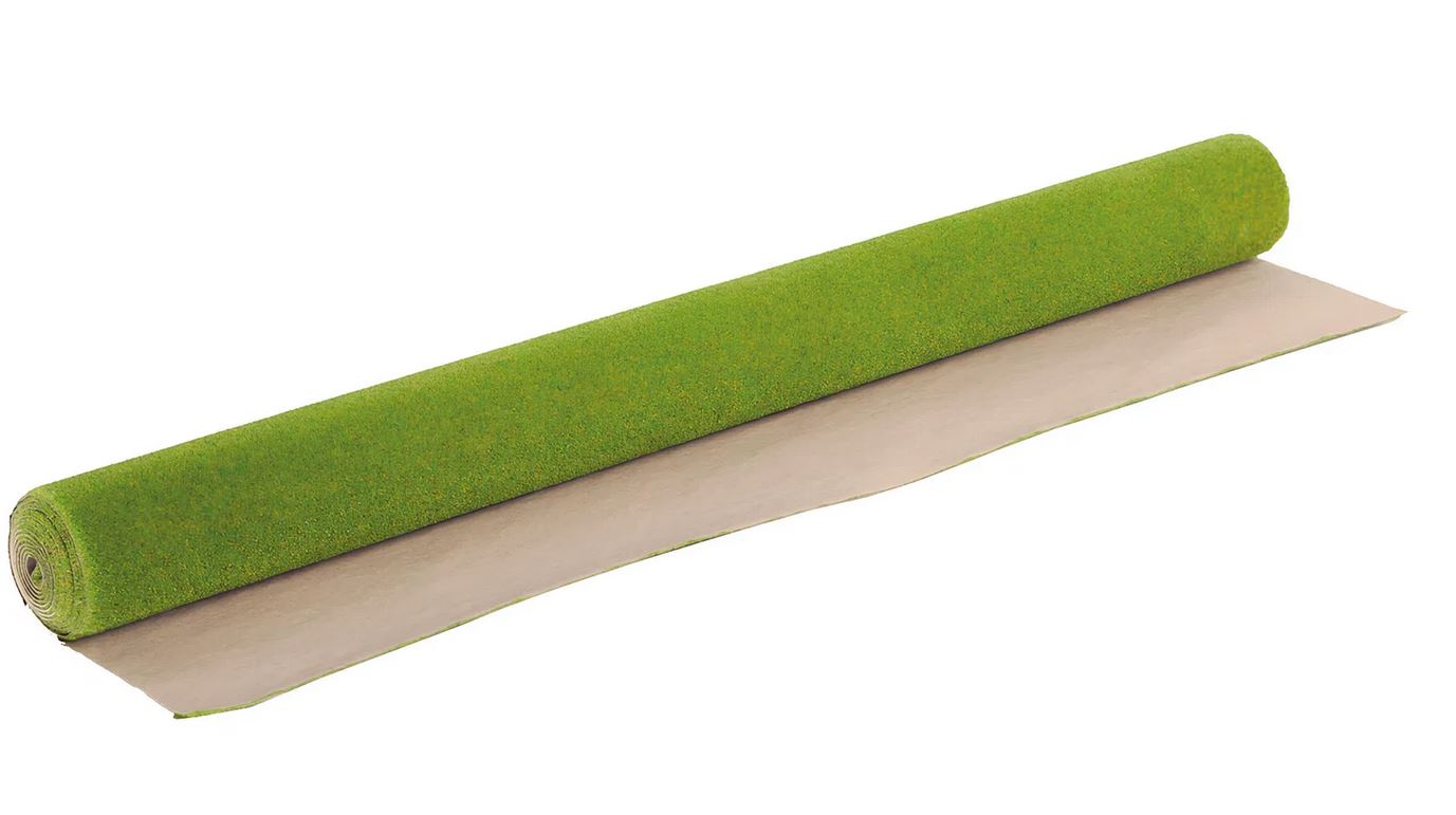 Ein strapazierfähiges Spezialpapier dicht mit Grasfasern beflockt. Die darin aufrecht stehenden Grasfasern ergeben ein naturgetreues Mattenbild.