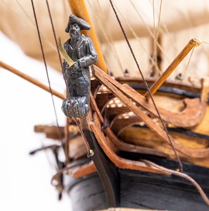 Entdecken Sie den Modellbausatz des Piratenschiffs Royal Fortune, dem Flaggschiff von Bartholomew Roberts — bekannt als Black Bart —, einem der legendärsten Namen der Piraterie des 18. Jahrhunderts. Dieser Holz-Schiffsmodellbausatz von OcCre lädt Sie ein, Stück für Stück das Schiff des Mannes zu bauen, der in nur drei Jahren über 400 Schiffe kaperte und das Ende des Goldenen Zeitalters der Piraterie einläutete.
