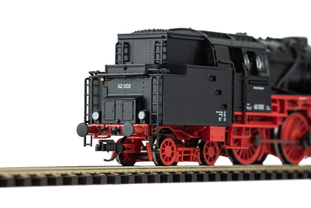 Neuheit 2025: Kraftvoll, kompakt und trotzdem äußerst filigran präsentiert sich die BR 62 der DB in Epoche III von PIKO. Die gedrungene Bauweise des Vorbildes wurde perfekt getroffen und maßstäblich ins Modell umgesetzt. Die typischen, baulichen Besonderheiten des Vorbilds wurden bei der Umsetzung ins Modell ebenfalls beachtet.Die glasklaren Fenstereinsätze des Führerhauses und der unverbaute Innenraum lassen den Blick auf die detaillierte Kessel- und Führerhausrückwand frei. Das Modell verfügt über optimale Fahreigenschaften. Für die unkomplizierte Nachrüstung eines Digitaldecoders steht eine moderne Next18-Schnittstelle zur Verfügung. Das Modell verfügt über TT Kurzkupplungen!