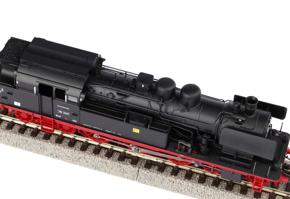 Endlich kommt eine zeitgemäße Ablösung der sehr beliebten und früher weitverbreiteten BR 78 in Form einer Neukonstruktion aus dem Hause PIKO – und mit ihr die erste Dampflok in der Produktlinie Expert. Das Modell hängt den etablierten Standard des Expert-Sortiments noch etwas höher. Nahezu alle Leitungen wurden freistehend ausgeführt, Führerhaus, Wasserkästen und Rauchkammer zieren feinste Nachbildungen der Nietköpfe. Radsatzsterne und Steuerung konnten durch die verwendeten Materialien höchst filigran ausgeführt werden. Für ausgezeichnete Fahreigenschaften sorgt der fünfpolige PIKO Motor mit Schwungmasse. Zusatzgewichte im Kessel und zwei Haftreifen sorgen für eine hohe Zugkraft. Ab Werk ist ein PIKO SmartDecoder 4.1 mit mfx-Fähigkeit eingebaut. Ebenfalls mit minimalem Aufwand können nachträglich ein Lautsprecher und ein Rauchsatz eingebaut werden. Für authentische Betriebsstimmung sorgt die fahrtrichtungsabhängige Beleuchtung in LED-Ausführung. Bremsschläuche zum Nachrüsten liegen bei.