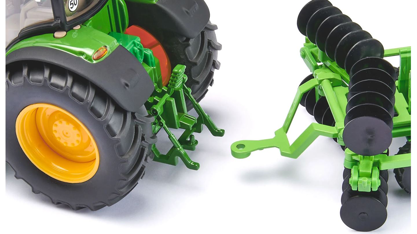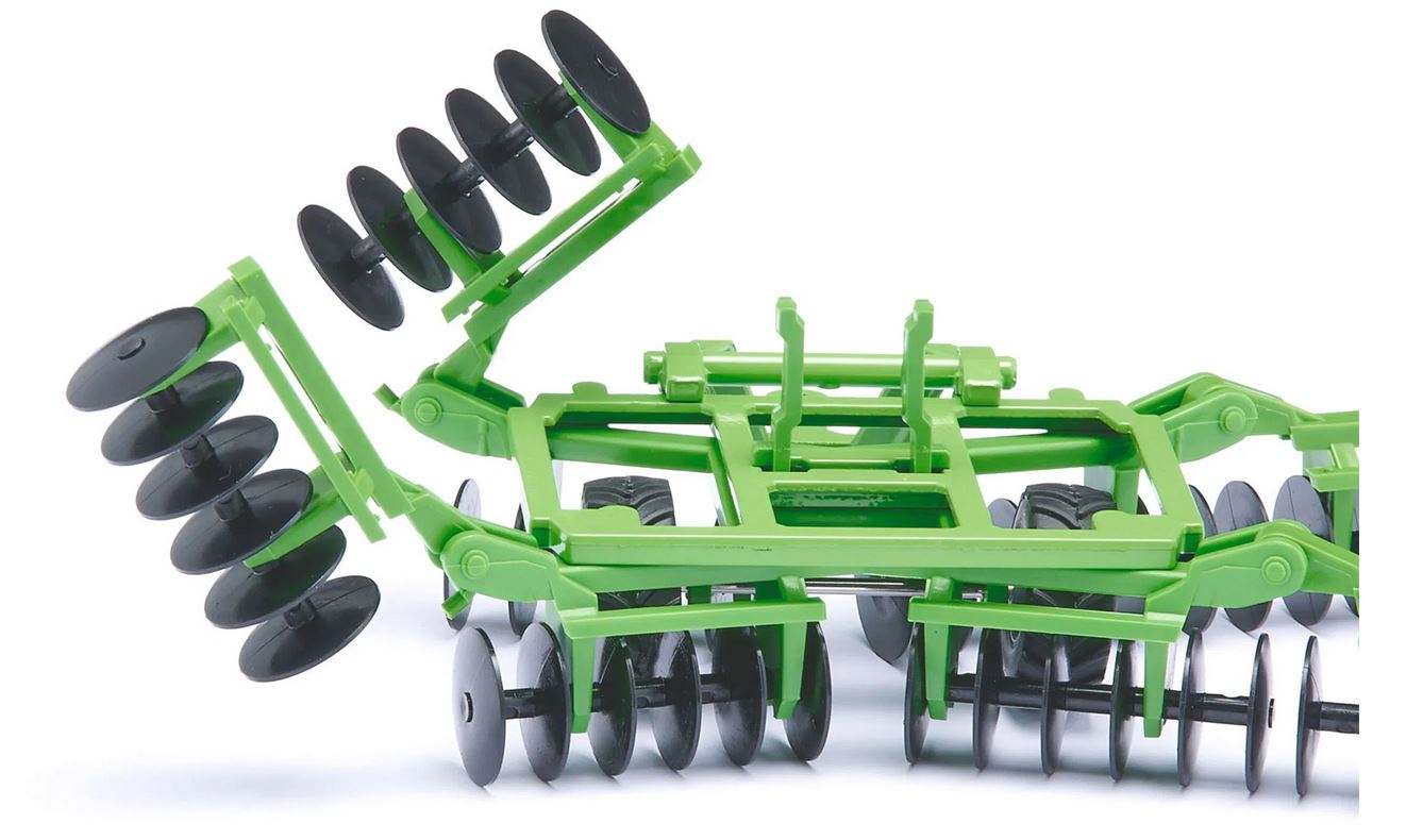 Ähnlich wie ein Pflug wird sie an den Traktor gehängt und los geht's. Diese Scheibenegge sieht nicht nur super cool aus, sondern ist auch unglaublich effizient. Und das Beste? Sie passt perfekt an alle siku-Anhängerkupplungen der Traktormodelle im Maßstab 1:32. Einfach ankoppeln, ausklappen und schon ist sie einsatzbereit!