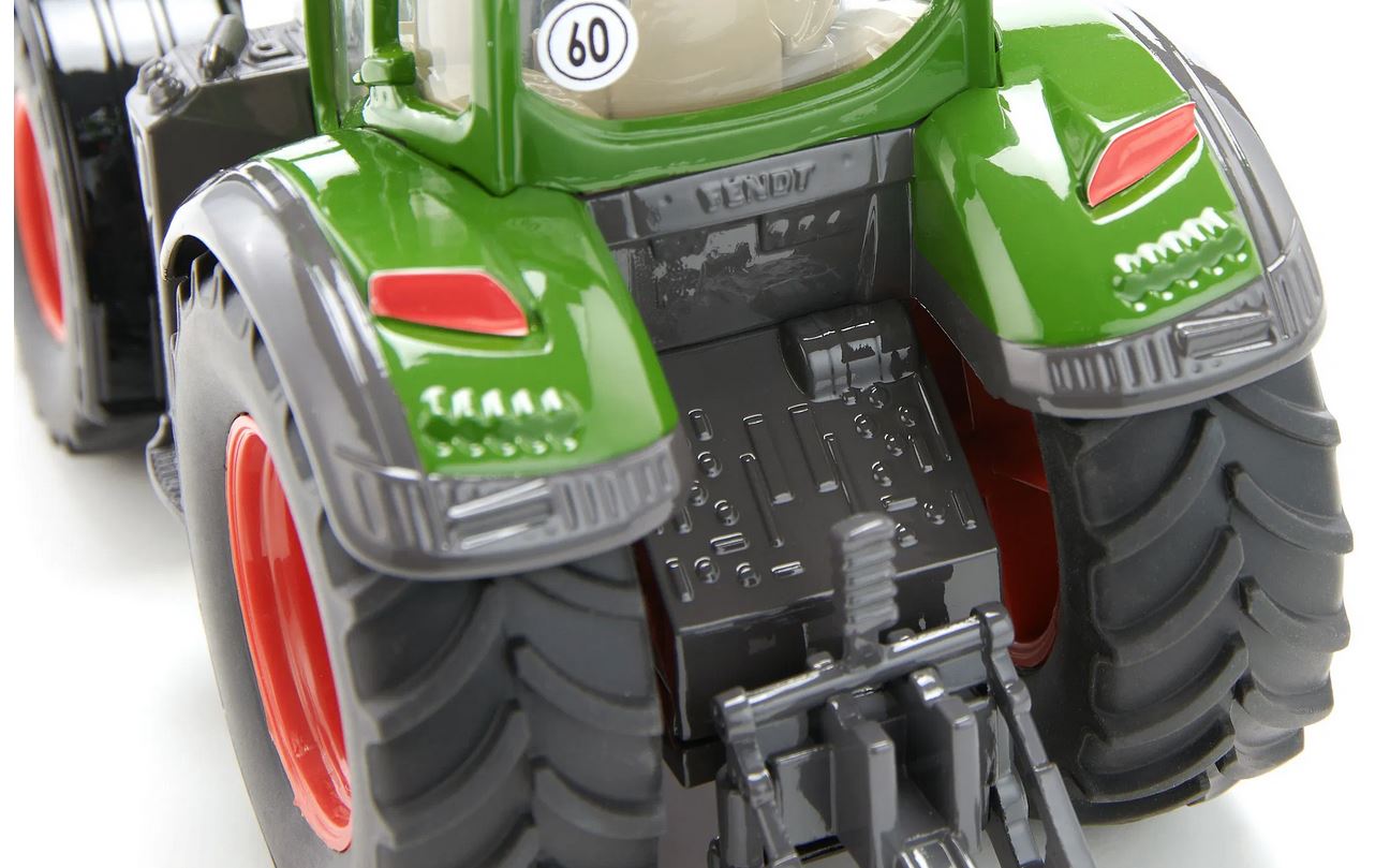 Neues Modell – neue Dimension: Der Fendt 728 Vario. Der Allgäuer Experte für landwirtschaftliche Maschinen hat den bewährten Mittelklasse-Modellen der 700-Serie ein ordentliches Update verpasst und damit die Messlatte in Sachen landwirtschaftliche Nutzfahrzeuge deutlich angehoben. Satte 280 PS verbergen sich unter der Motorhaube des 728 Vario, ermöglicht durch einen neuen Sechszylinder-Motor von AgcoPower. Dank Rundumlicht auf dem Dach ist der Traktor auch zu später Stunde und in diffusem Licht immer einsatzbereit und verrichtet alle Arbeiten auf dem Feld zuverlässig und akkurat. Die Kabine mit den beweglichen Spiegeln kann abgenommen werden und ermöglicht dem Fahrer einen leichteren Einstieg. Zudem ist so auch das Lenkrad besser erreichbar, mit dem der Traktor gelenkt werden kann: Denn für ein noch realistischeres Fahr- und Spielerlebnis verfügt das Modell über eine Achsschenkellenkung an der Vorderachse. Die Standard siku Front- und Heckkupplung aus Metall mit beweglichen Elementen ermöglicht zudem das Anheben und Absenken von landwirtschaftlichen Maschinen. Bestens geeignet für den Einsatz im Kinderzimmer und im Garten: Die Motorhaube, die Kotflügel vorne und hinten sowie das Fahrgestell des Modells sind aus Metall und sehr robust. Die gummierten Reifen mit original landwirtschaftlichem Profil bieten zudem optimalen Grip auf jedem Untergrund. Wie immer bei siku sind die Scheinwerfer und Leuchten vorne und hinten originalgetreu gedruckt.