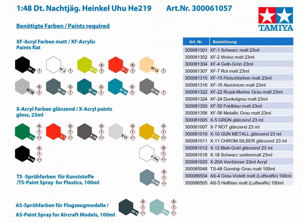Produktinformationen "Tamiya 61057 Dt. Nachtjäg.Heinkel Uhu He219 1:48 Bausatz Neu OVP"