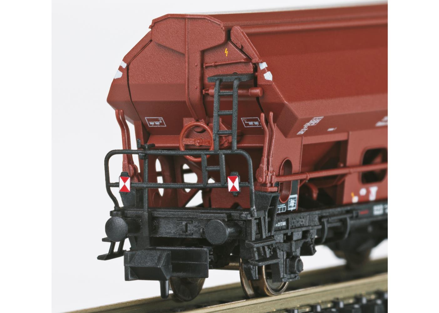 Vorbild: 1 Niederbordwagen Rmrso 31, 1 2-achsiger Kesselwagen, 1 Silowagen Kds 56 und 1 Seitenentladewagen Ktmmvs 69. Alle Wagen eingestellt bei der Deutschen Bundesbahn.