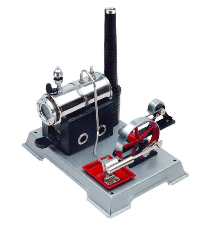 Der Bausatz einer Dampfmaschine (D5) zusammen mit einem Dynamo und elektronischen Bauteilen ergeben diese Experimentier- und Lerneinheit. Nach dem Zusammenbau der Dampfmaschine kann mit dem sprichwörtlichen "Begreifen" elektrischer Schaltungen begonnen werden. Der Dynamo erzeugt genügend Spannung, um die LEDs in den verständlich beschriebenen Versuchsanordnungen zum Leuchten zu bringen.