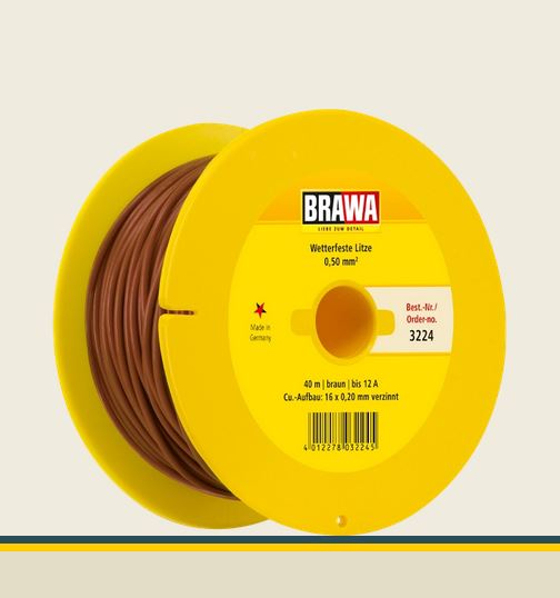 Brawa 3224 Wetterfeste Litze 0,50 mm² braun 40-m Spule Neu OVP