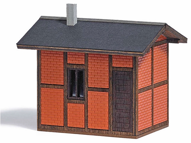 Rangiererhäuschen in Ziegel-/Fachwerk-Bauweise. Fachwerk, Fenster und Türen aus echtem Holz, bereits fertig koloriert. Bausatz.