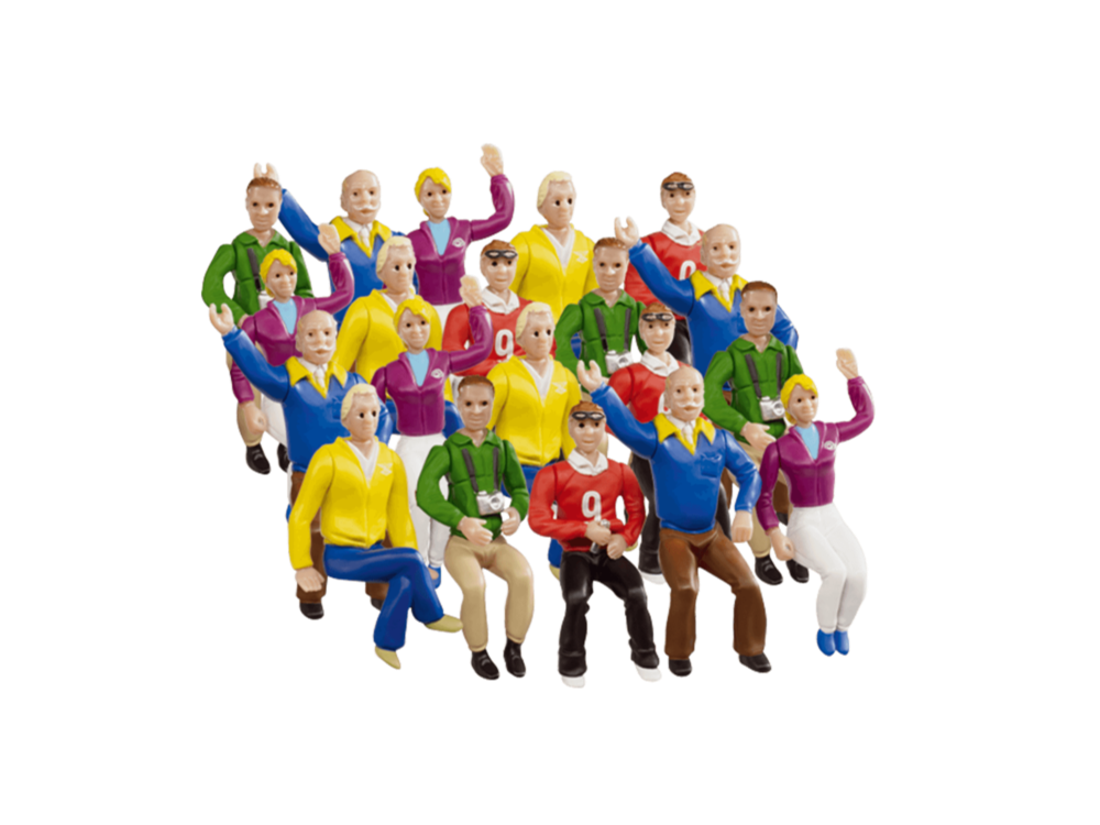 Figurensatz für die ZuschauertribüneDIGITAL 124, DIGITAL 132 und EVOLUTIONGeeignet für die Rennb ahn-Dekoration Liebevolle Deko für Die Carrera Bahn Was wäre ein spannendes Autorennen nur ohne jubelnde Zuschauer? Mit diesem Figurensatz erweiterst Du Deine Carrera Bahn um ein tolles Detai l und schaffst ein noch authentischeres Motorsportfeeling. Der Figurensatz für die Tribüne besteht a us 20 sitzenden Figuren und begeistert mit einer extrem detailgetreuen und colorierten Ausarbeitung. Die Körperteile der Besucher lassen sich beliebig positionieren bzw. drehen. Das Dekoobjekt verleih t Deiner Carrera Rennstrecke geschickt das gewisse Etwas.