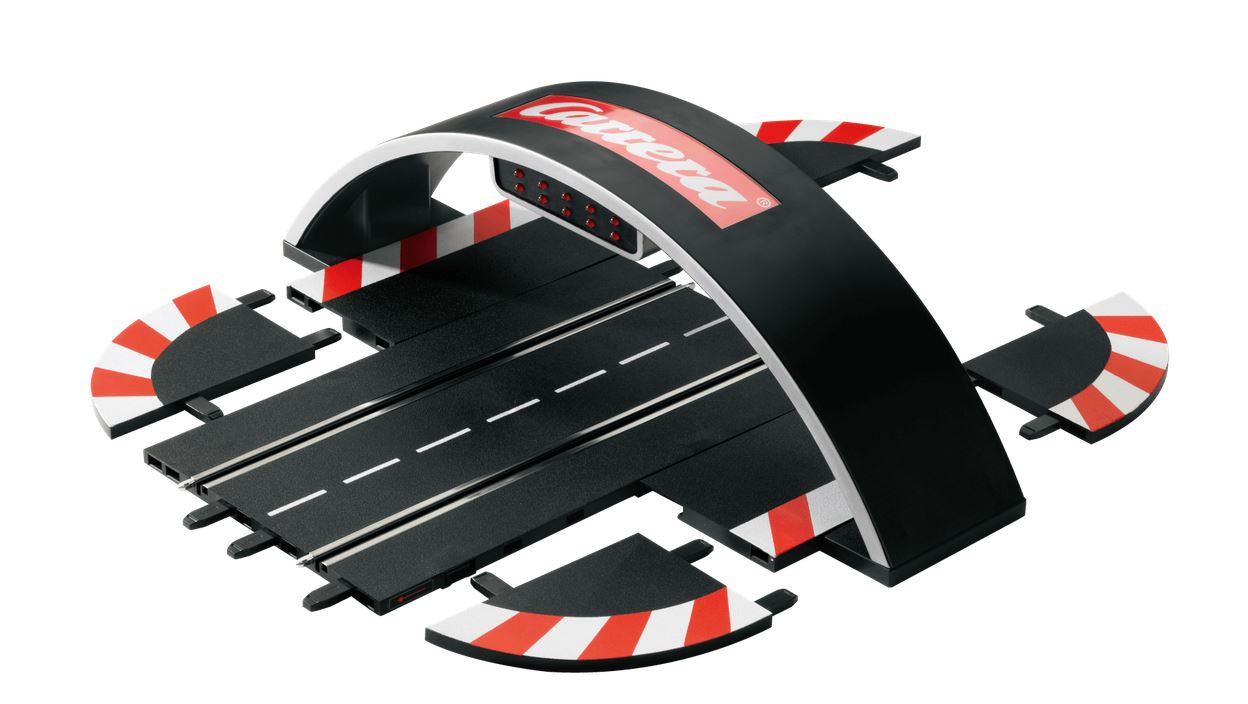 Die Fahrzeuge stehen bereit, die Startlichter springen im Einklang zu den kurzen, Aufmerksamkeit erregenden Tönen und jeder weiß, nur noch ein Augenschlag bis der Konkurrenzkampf der Slotcars startet. Die Spannung kurz vor dem Start eines Rennens ist unbeschreiblich. Wann fällt sinnbildlich der Startschuss, wann ist der richtige Zeitpunkt, um den Startbutton zu drücken? Das Startlight Feature sorgt dafür, Dein Adrenalin noch weiter in die Höhe schießen zu lassen. Der halbrunde Aufbau ist mit einer LED-Anzeige ausgestattet, mit der die Startsequenz simuliert wird. Zusammen mit dem Sound Effekt kommt dabei ein authentisches Fahrfeeling auf der Carrera DIGITAL 124 und Carrera DIGITAL 132 auf. Beim Startlight Set ist eine Adapter Unit für Rennbahnen im Maßstab 1:24 und insgesamt vier Abschlussstücke für links und rechts dabei. Zubehörartikel funktioniert nur in Verbindung mit der Control Unit (30352).