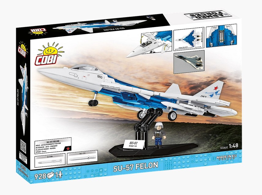 Mit dem Su-57 Felon-Set von COBI kannst du deine Sammlung um ein Kampfflugzeug erweitern, das die Geschichte der Militärluftfahrt nachhaltig geprägt hat. Unsere Version der SU-57 ist noch getarnter als das Original – keine hervorstehenden Schrauben oder Lücken.