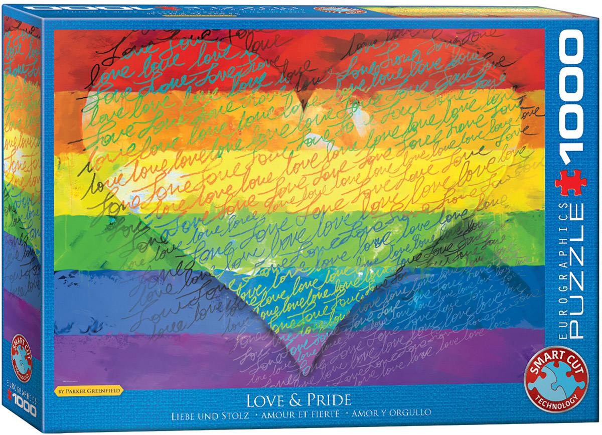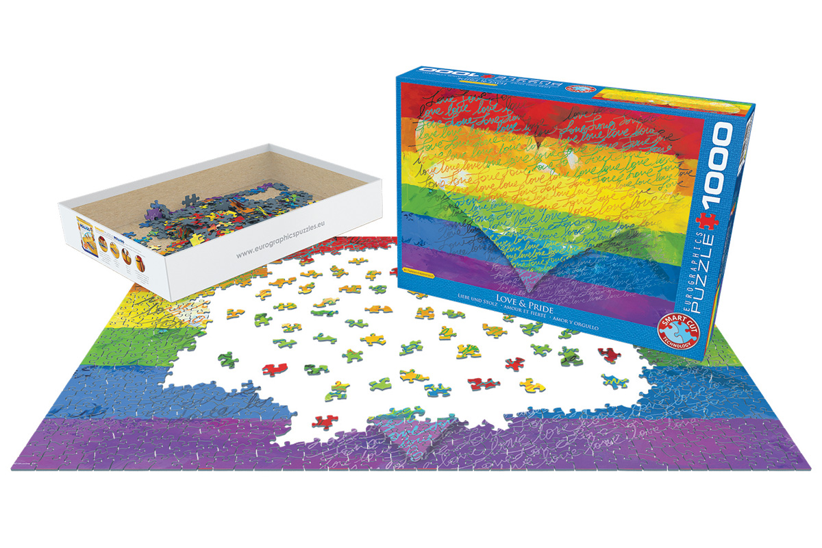 EuroGraphics Liebe und Stolz 1000-Teile Puzzle Verpackungsabmessungen 35 x 25 x 6 cm. Abmessungen des zusammengebauten Puzzles 48 x 68 cm. Der schwule San Francisco Politiker Harvey Milk forderte 1977 den Künstler Gilbert Baker heraus ein Symbol für die Gay Freedom Day Parade zu entwerfen. Jede Farbe steht für eine besondere Bedeutung. Speziell entwickelte Pappe mit wiederstandsfähiger Leinenstruktur für einen noch besseren Zusammenhalt der Teile.