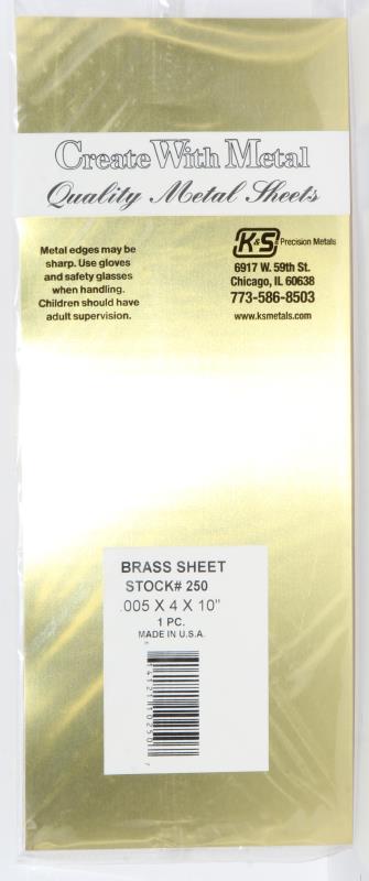 K&S-Metall 960250 Messingplatte 101,6 x 254mm, 0.005 inch dick. 1stück