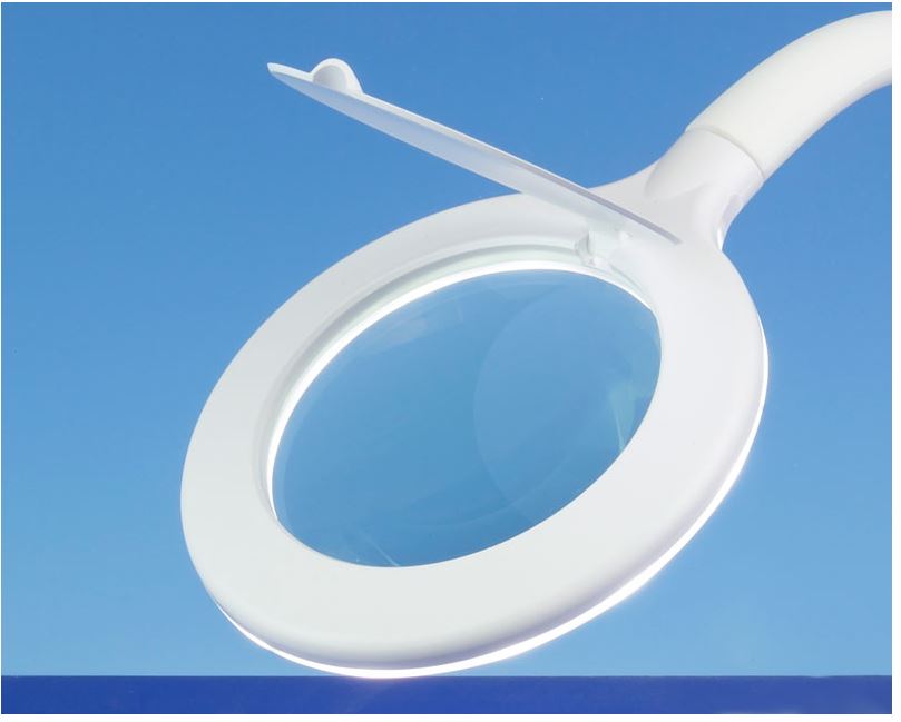 Lupenlampe mit klappbarer Sonnenschutzabdeckung