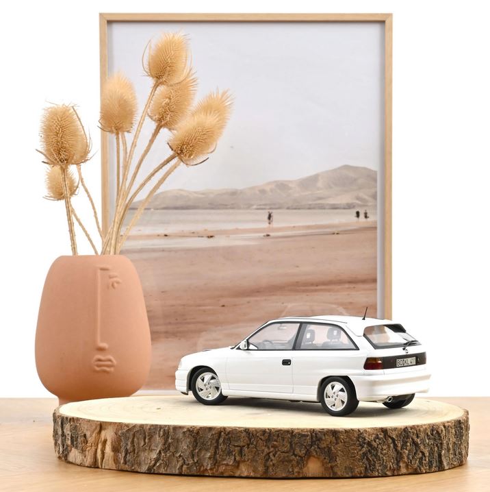 Die markanten Lufteinlässe auf der Motorhaube, die speziellen Felgen, die besondere Kühlermaske, der markante Dachspoiler – alles, was einen Astra GSi ausmacht, gibt das Norev-Modell wieder. Unterstrichen wird das Design durch die Farba Casablanca Weiß – die traditionelle Opel Rennsportfarbe.