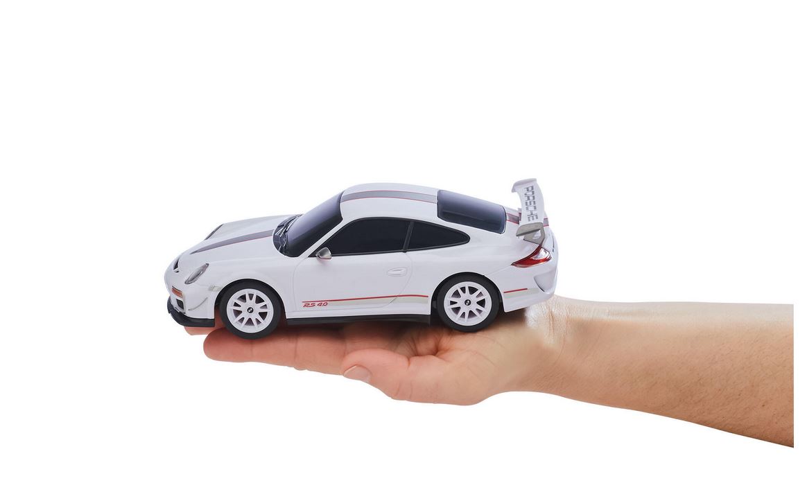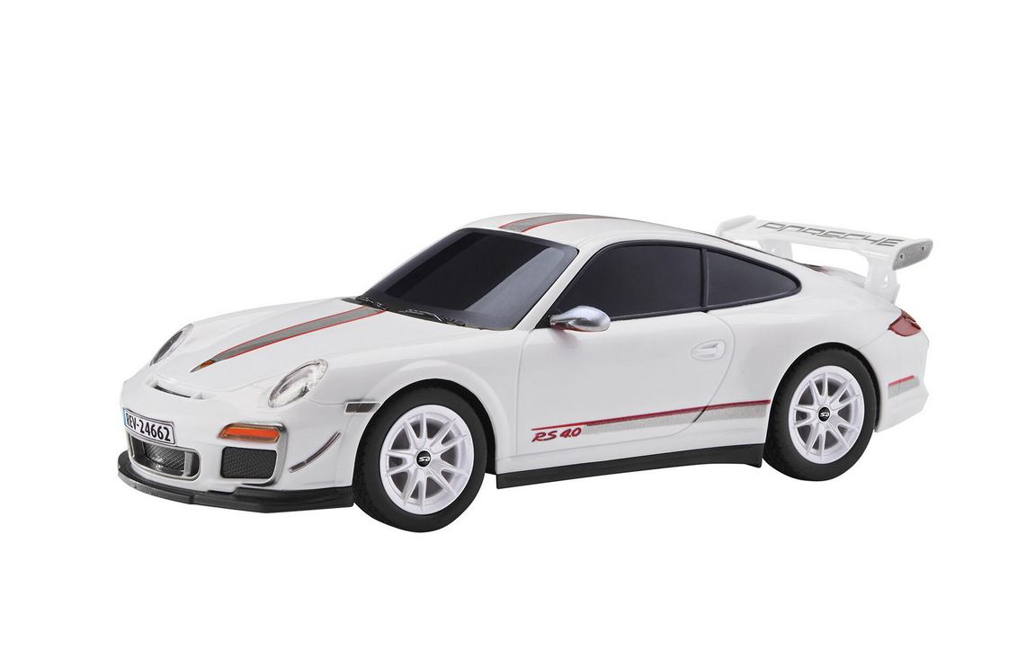 Sportlichkeit und hochwertige Optik - dafür steht der Porsche 911 GT3 RS Sportwagen als lizenzierte Nachbildung im Maßstab 1:24. Darüber hinaus ist er mit einer 2.4 GHz-Fernsteuerung, einem leistungsstarken Elektromotor sowie gefederten Vorderrädern ausgestattet. Das sind beste Voraussetzungen für Fahrspaß pur im Kinderzimmer und das sogar mit mehreren Cars gleichzeitig. Dabei kann die Fernsteuerung sowohl für Rechts-als auch Linkshänder passend eingestellt werden. - 1:24 Scale Car in stabiler Ausführung - Exakte und wendige Lenkung - Sehr detaillierte und originalgetreue Nachbildung - Mit Frontbeleuchtung (LED) - Mit 2.4 GHz-Fernsteuerung, für Rechts- Linkshänder geeignet 5 x 1,5V AA Batterien benötigt / nicht enthalten