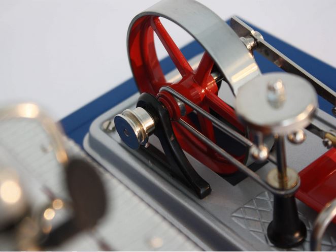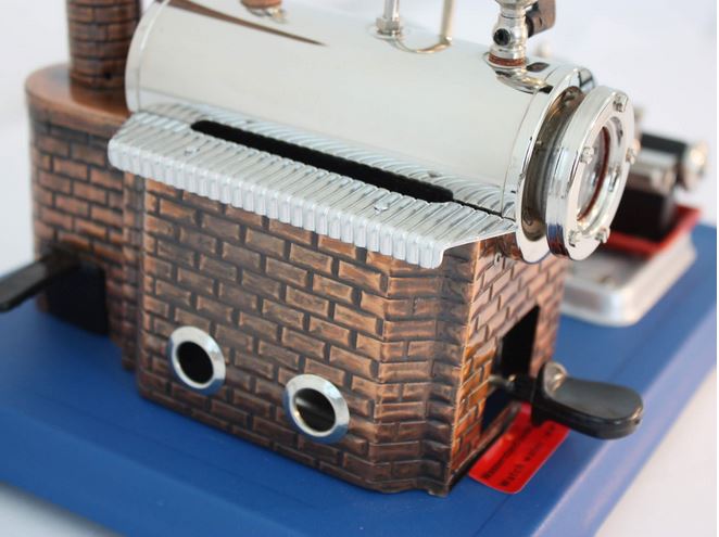 Durch den doppelt wirkenden Zylinder ist die Leistungsstärke dieses Modells im Gegensatz zu den Modellen mit oszillierendem Zylinder wesentlich größer. Das Triebwerk dieser Maschinenanlage hat eine komplette Dampfsteuerung und einen Zentrifugalregulator.
