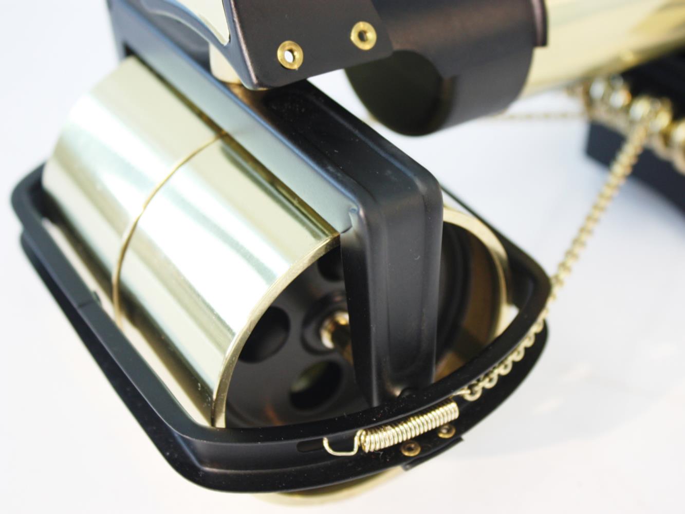 Laufsteg, Kettenlenkung und Getriebekupplung sind selbstverständliche Details unserer Old Smoky. Die Kupplung - links neben dem Führerstand durch eine Stange zu bedienen - ermöglicht, dass die Dampfwalze auch als ortsfeste Dampfmaschine betrieben werden kann. Dabei ist die Old Smoky mit ihrem 230 ccm Kessel stark genug, um sowohl im mobilen Betrieb Zubehör zu ziehen als auch im stationären Betreib Antriebsmodelle anzutreiben. Die Aluminium-Walzenräder dieses Dampfrollers sind poliert und lackiert.